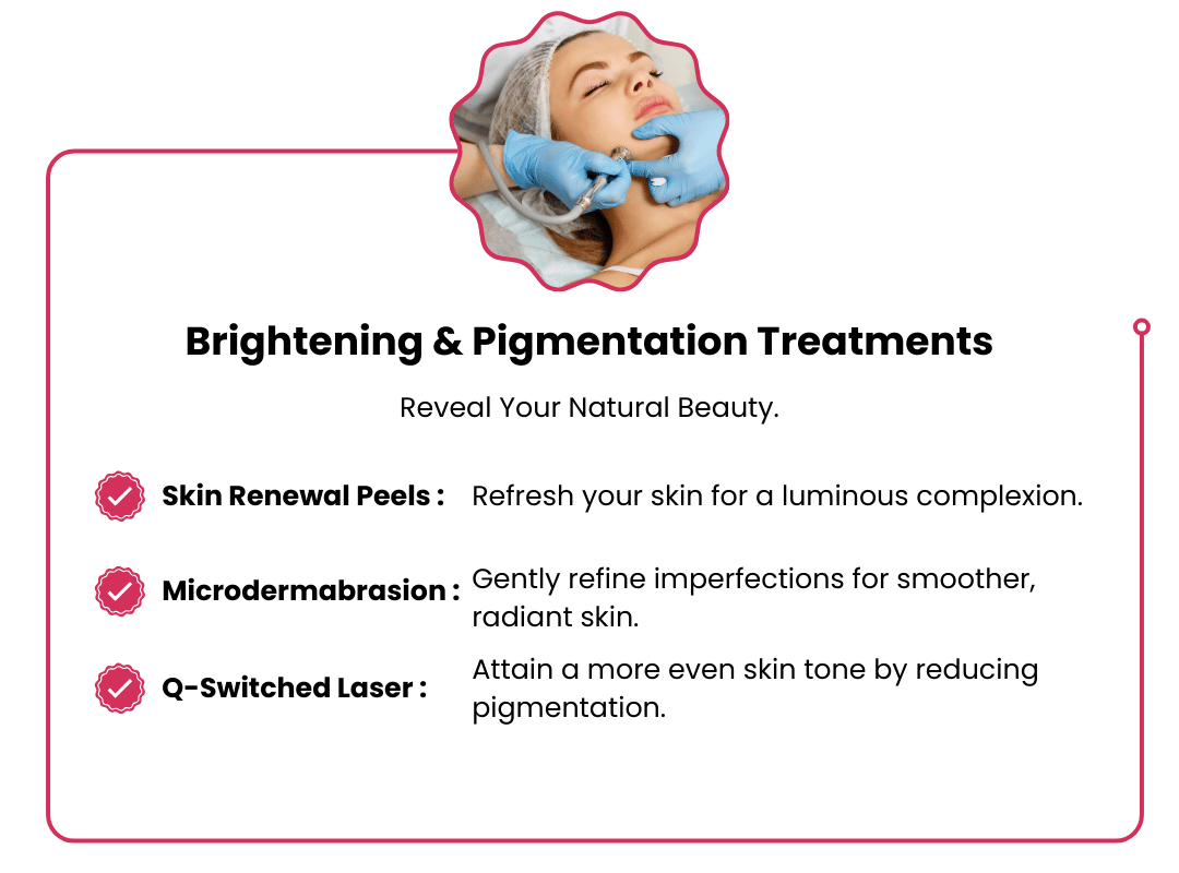 Our skin treatments address a wide range of concerns, including acne, wrinkles, sun damage, hyperpigmentation, and uneven skin tone. Whether you’re looking to improve the appearance of fine lines or reduce blemishes, we have treatments tailored to your specific needs